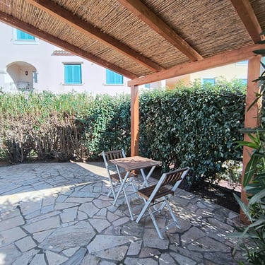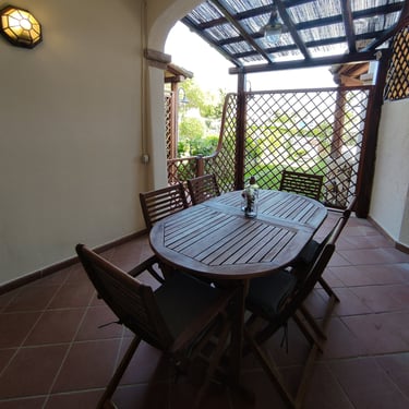 Al centro del paese di Porto San Paolo e vicinissimo a tutti i servizi, comodo appartamento al piano terra con veranda frontale attrezzata per pranzi e cene all'aperto e veranda posteriore, con zona divani. La zona giorno è composta da un salone con angolo cottura, penisola e divano letto. La zona notte da 2 camere matrimoniali e 2 bagni. Aria condizionata, wi-fi e ampia disponibilità di parcheggio nella zona.