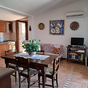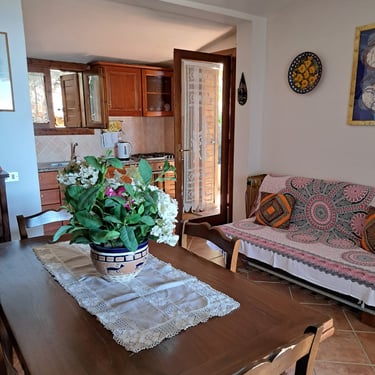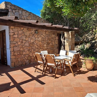 Immersa nel verde del residence "Punta Molara" e con un eccezionale vista mare, porzione di villa in posizione panoramica a 350 mt dal mare. Angolo cottura, zona giorno con aria condizionata e divano letto e zona pranzo, 2 camere doppie e 2 bagni. Veranda coperta attrezzata per pranzi e cene indimenticabili e posto auto riservato.
