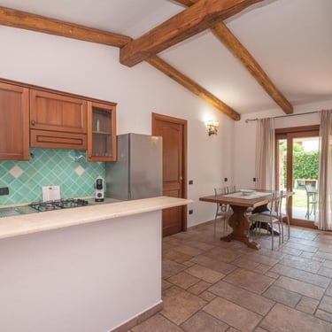 Nel centro di Porto San Paolo, ma all'interno di un residence molto tranquillo, porzione di villa con giardino su 3 lati. Grande zona giorno e cucina a vista. Le camere da letto sono due, una matrimoniale ed una con 2 letti singoli ed un bagno. Divano letto, aria condizionata, giardino e barbecue. Vicino a tutto, 1 km dalla spiaggia.