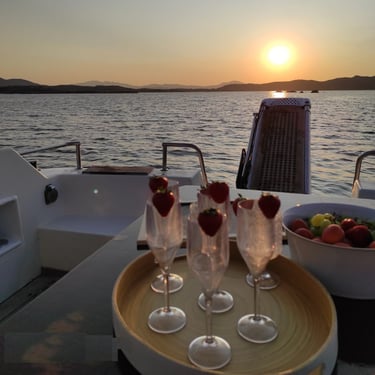 A bordo della nostra imbarcazione TopOne, potrai vivere una giornata intera alla scoperta delle isole e delle calette della nostra zona, nel più completo relax, impossibili da raggiungere via terra. Faremo il bagno alle piscine di Molara, ci tufferemo nelle acque cristalline di Capo Coda Cavallo e le spiagge delle Farfalle, Cala Girgolu, spiaggia del Dottore e faremo una sosta per un gelato o un pranzo sulla spiaggia dell' isola di Tavolara. Oppure, bagno all'isola di Figarolo per vedere i delfini. E se non siete ancora stanchi, cena a lume di candela sotto le stelle.