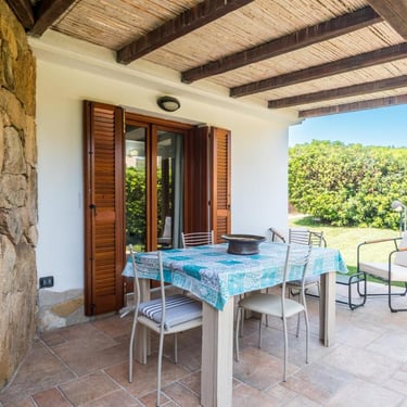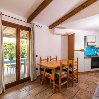 All'interno di un tranquillo residence, vicino a tutti i servizi ed a soli 1.000 metri dalla spiaggia, elegante bilocale con giardino su 3 lati. Ampia zona giorno con cucina a vista e divano letto, camera da letto matrimoniale con accesso al giardino, veranda esterna ed aria condizionata.